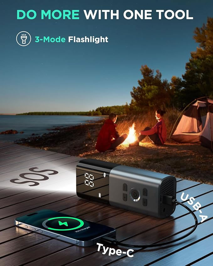 Multi-Function Emergency Tool: Includes a 3-mode flashlight and a USB-A to USB-C charging cable.