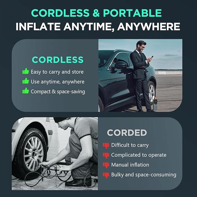 Convenience: Auto-Shutoff at Target Pressure; Cordless & Portable